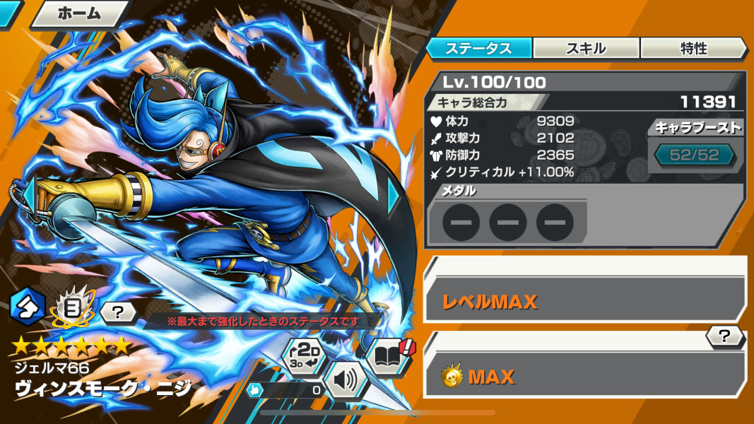 ※メダル強化で「ハンコックメダル」以外に「攻撃力+」がつかない。そのため,火力盛りにする場合はアイテムが必要。