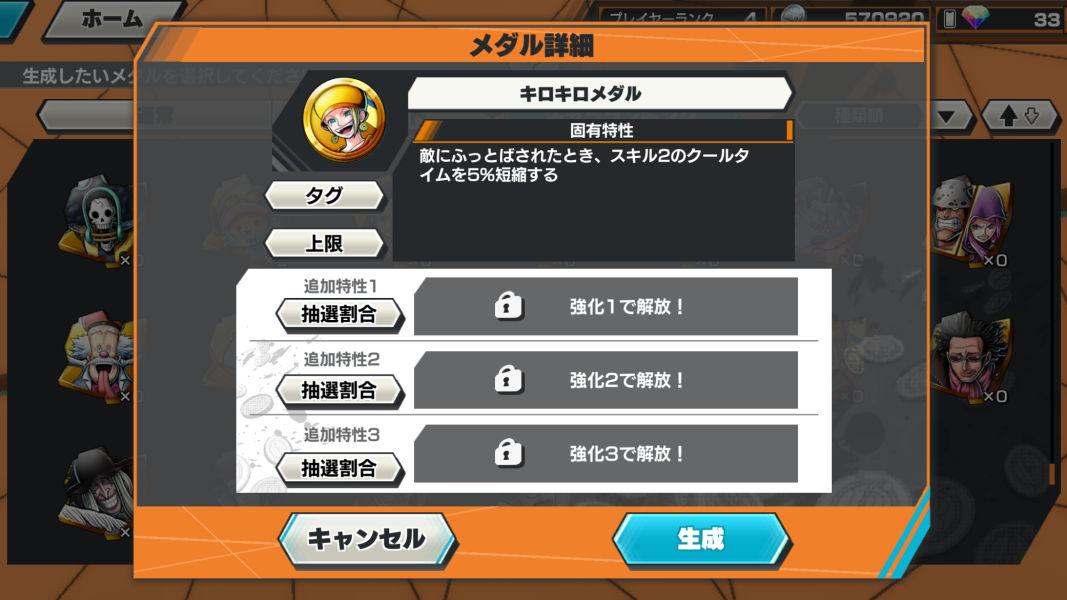 ![]() ギャルディーノメダル | スキル1を使ったとき,スキル2のクールタイムを5%短縮する | |