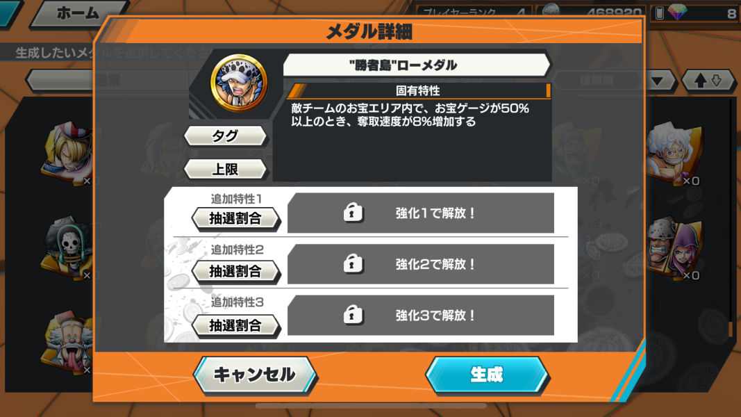 "勝利島"ローメダルの生成方法,効果,タグ一覧,セットにおすすめのメダルを紹介しています。メダルシミュレータもあるので組み合わせ効果を確認し最強メダルセットの作成にご活用ください!